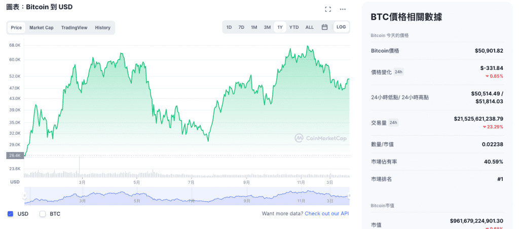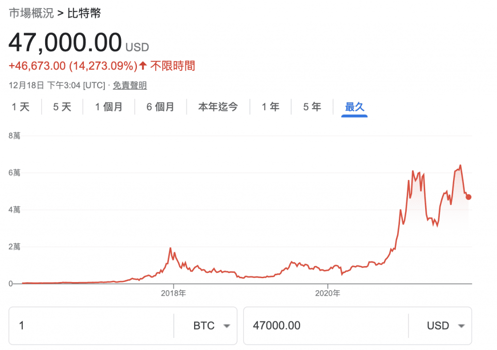 目前,比特幣是市值占比第一名的虛擬貨幣,歷史上也曾經來到一顆比特幣 6 萬多美元。