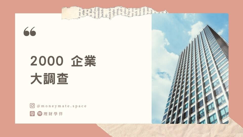 理財入門 【台灣企業排名】2000 大企業有誰?天下雜誌資料庫天下雜誌在每年五月都會有一本重量級的刊期「2000大企業調查」,特別針對上一年度台灣的2000大企業 Read more… By Shirley, 4 年2022/05/30 ago