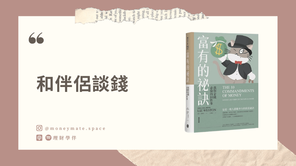 投資入門 富有的秘訣 9:伴侶也要談錢,一起累積財富才容易今天想跟學伴聊聊,一本樂金文化出版的新書《富有的秘訣》,這本書分享了十大理財觀念。 作為一個即將步入 Read more… By Shirley, 4 年2021/12/04 ago