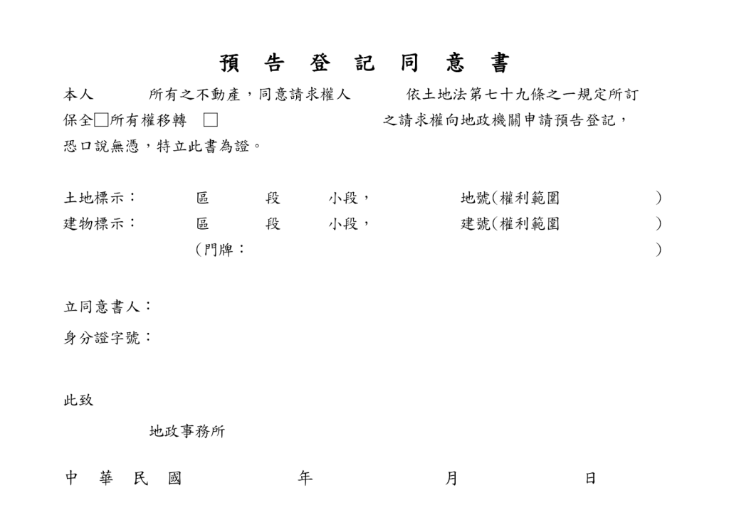 - 預告登記同意書(同意書應蓋義務人之印鑑章)