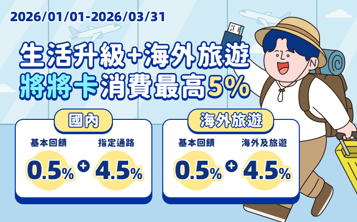 - 旅遊加碼回饋活動:2026年01月01日至2026年03月31日