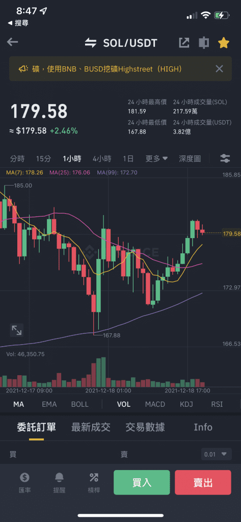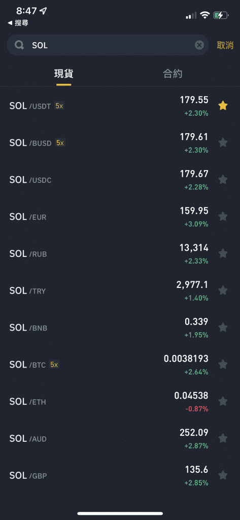 以幣安為例,購買 Solana: